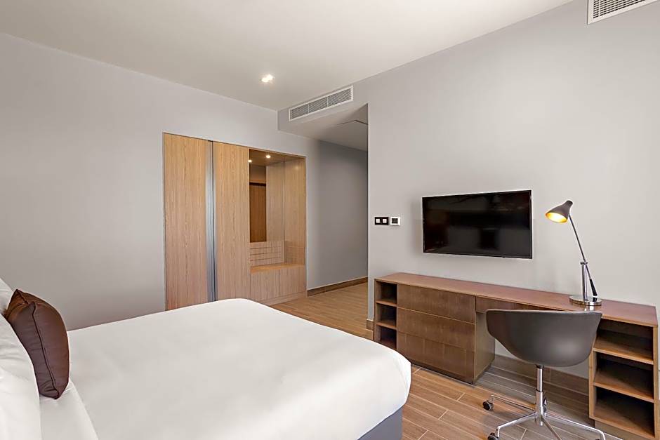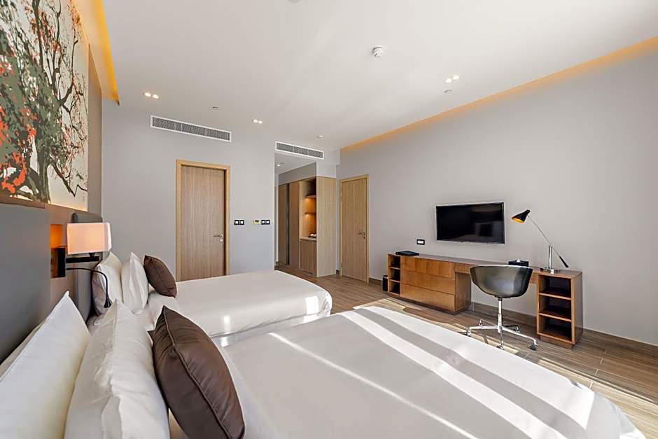 This spacious suite is consisted of of 1 living room, 2 separate bedrooms and 3 bathrooms with a bath and free toiletries. The suite's kitchenette is available for cooking and storing food. The air-conditioned suite offers a flat-screen TV, a tea and coffee maker, a wardrobe, a safe deposit box as well as city views. The unit offers 3 beds.